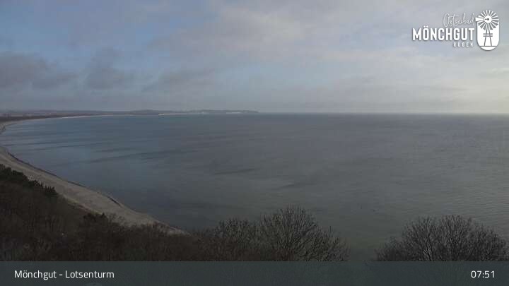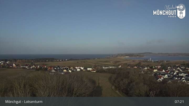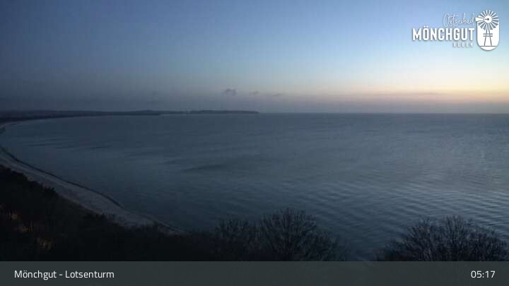 Die Webcam ist am Lotsenturm bei Thiessow positioniert und zeigt den Blick auf die Halbinsel Mönchgut, die zu Rügen gehört und an der Ostsee liegt.