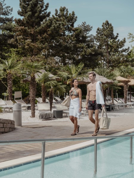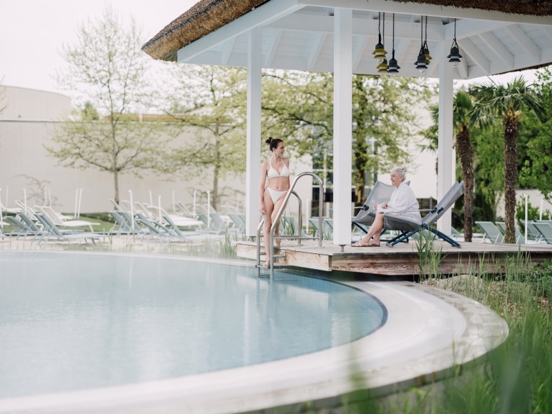 Unser Tipp: Wer Therme und Behandlung kombinieren möchte, findet im Day-Spa-Angebot des Resorts gebündelte Pakete, etwa mit Salzgrotten-Aufenthalt und Kräuterstempel-Massage.