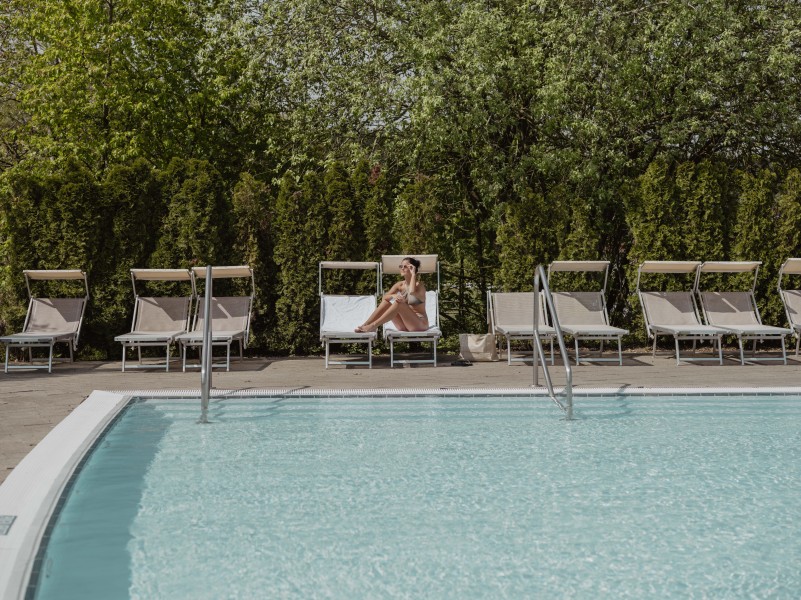 Kaltbecken, Außenzonen und Liegeflächen sind als notwendiger Gegenpol angelegt, nicht als Ergänzung, sondern als struktureller Teil des Ablaufs. Regelmäßige Aufgüsse bringen zusätzliche Impulse in den Rhythmus aus Erwärmen, Abkühlen und Ruhen.