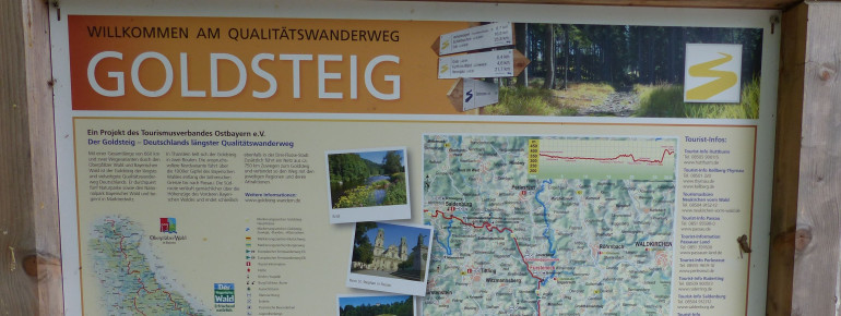 Dieser Weg ist sowohl Teil des Pandurensteigs, der sich von Waldmnünchen in der Oberpfalz (nahe der deutsch-tschechischen Grenze) bis nach Passau zieht, als auch Teil des Goldsteigs, der in der nördlichen Oberpfalz beginnt. Der Goldsteig ist eine historisch wichtige Salzhandelsroute und insgesamt 660 Kilometer lang, die sich in 14 Wander-Etappen aufteilen lasasen. Weitere Infos zum Start stehen bei der Goldsteig-Startetappe von Neuhaus nach Letzau.