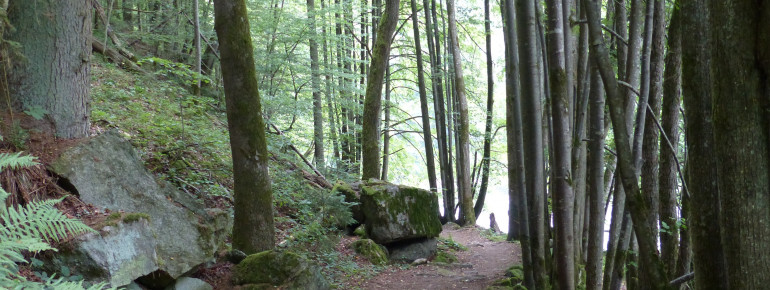 Nach einiger Zeit verlässt man dann sowohl die Ilz als auch die Gleise und wandert einige Meter höher durch den Wald hindurch. Die Hinweistafeln mit Infos zu Fischen und Pflanzen, die hier wachsen geben aber immer wieder etwas Abwechslung. Oder man genießt einfach die unbeschreibliche Idylle hier.
