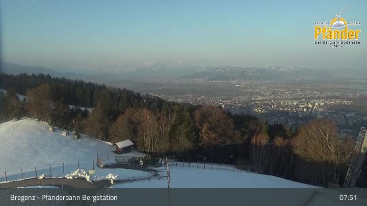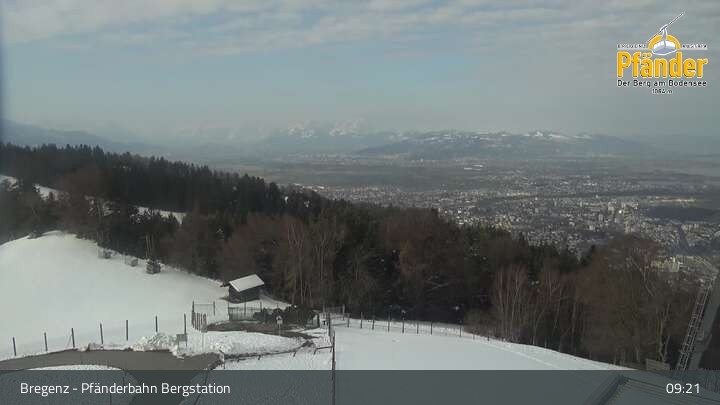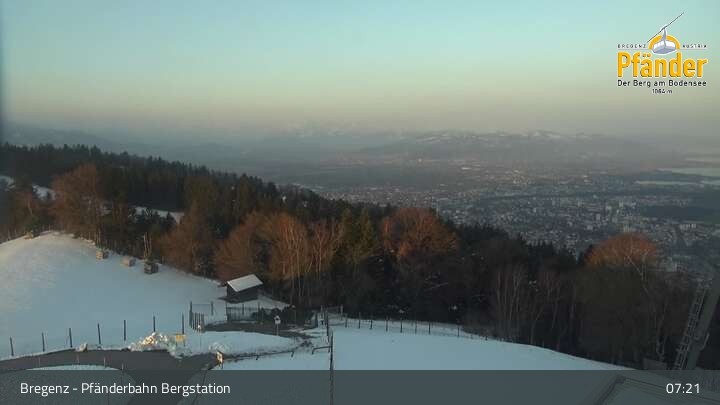 Die Video-Webcam zeigt einen traumhaften Panoramablick von der Bergstation am Pfänder hinunter auf den Bodensee und die Stadt Bregenz.