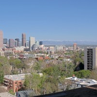 Blick auf Downtown Denver vom Gebäude des Colorado Department of Public Health and...
