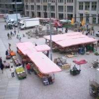 Die Webcam zeigt den Blick vom Chemnitzer Juwelier Roller auf den Neumarkt. Dort...